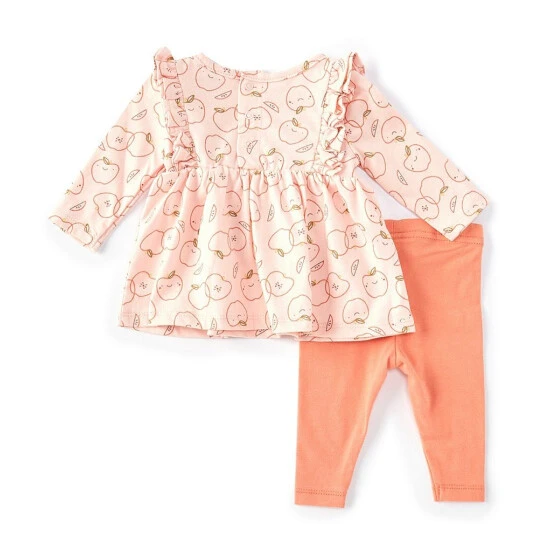- tossed apple printed onesie with ruffle on shoulders